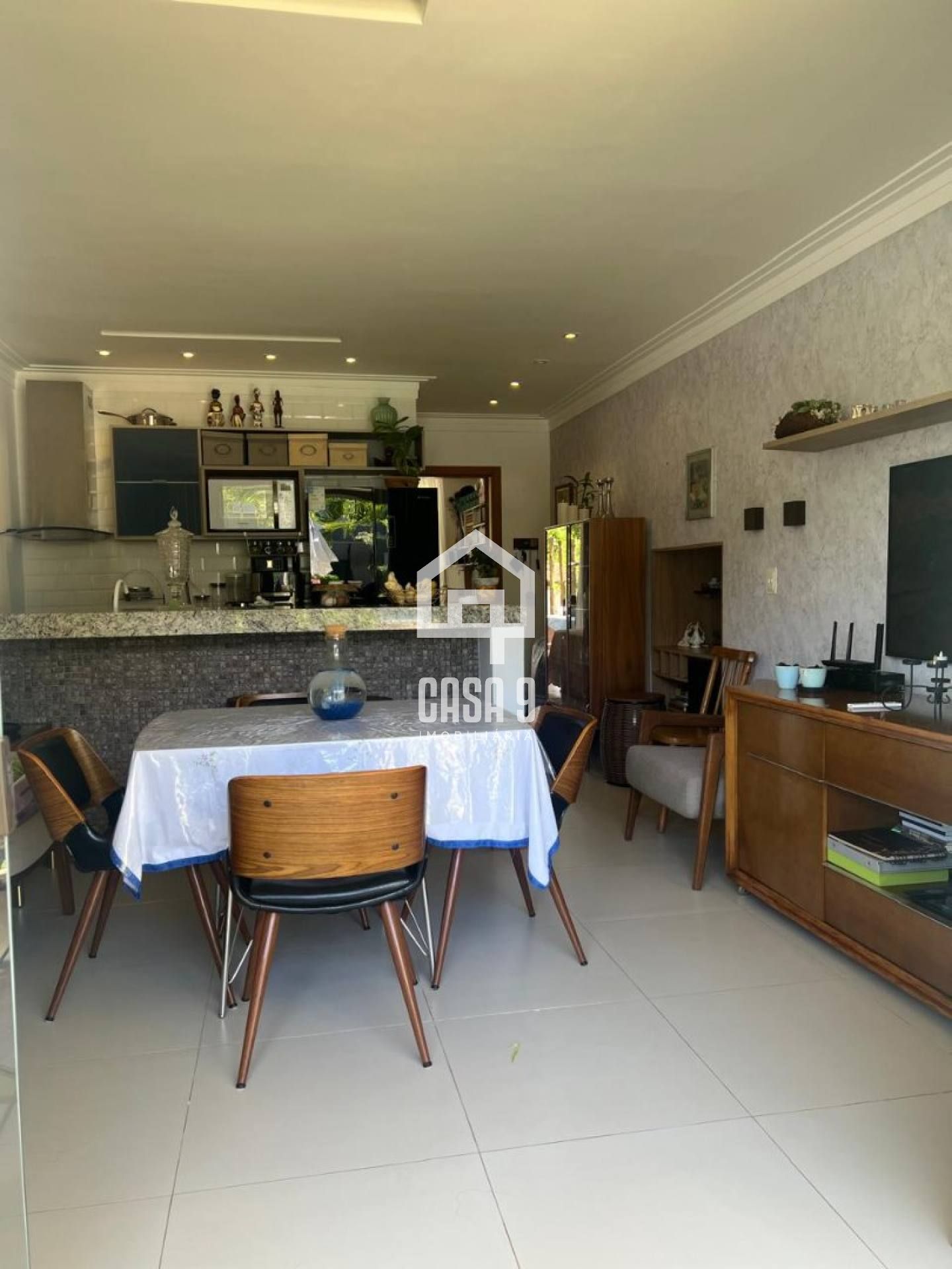 Sala arejada e confortável, integrada à cozinha americana
