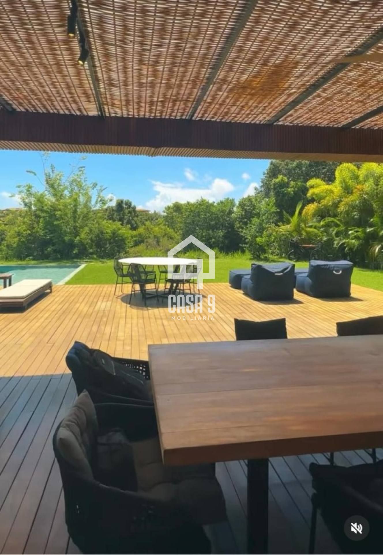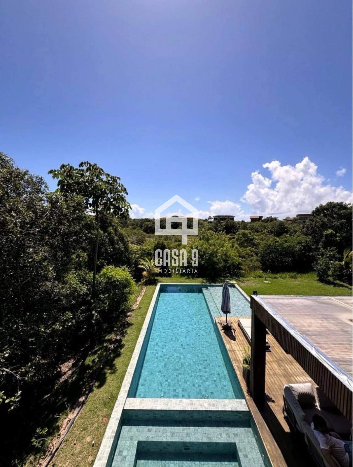 O lazer privativo se destaca como um verdadeiro refúgio: piscina com jacuzzi integrada e um generoso deck de madeira com 120 m², criando o cenário perfeito para relaxar ou receber com sofisticação.