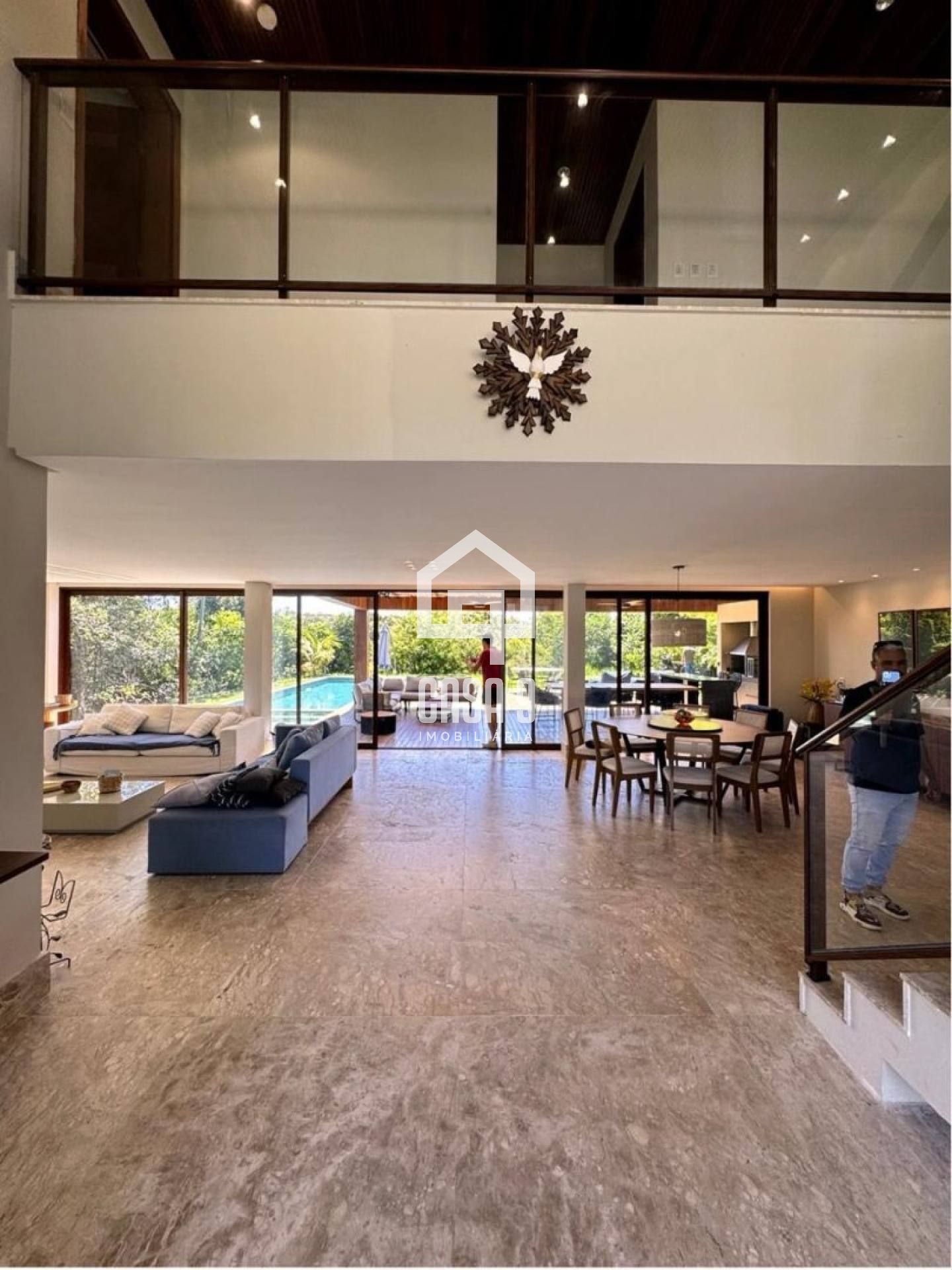 Com 530 m² de área construída, a casa foi projetada para integrar conforto e elegância em cada detalhe. Os ambientes sociais são amplos e conectados, com salas de estar e jantar que se abrem para a área externa, proporcionando uma vivência fluida e acolhedora.